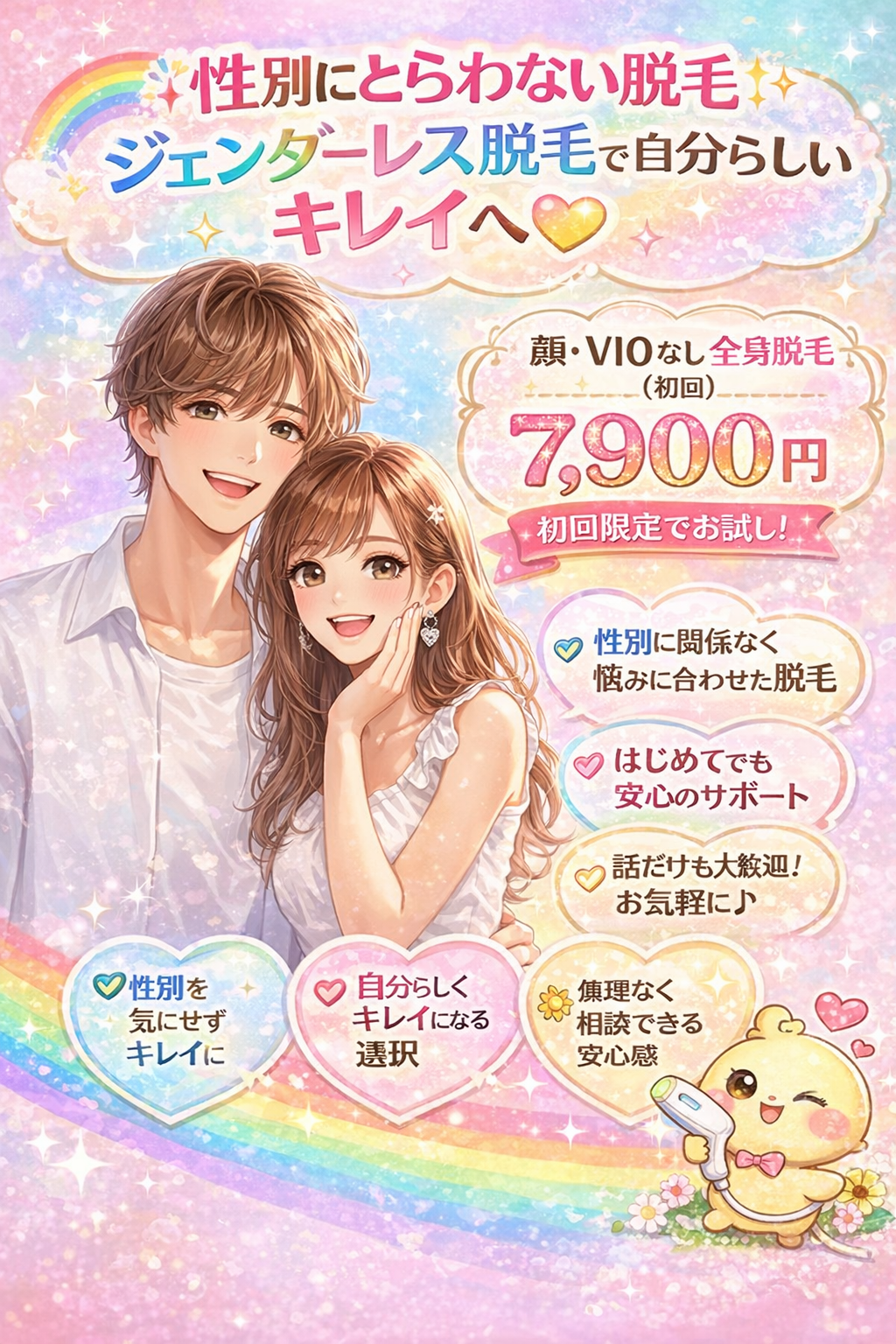 [普段はちゃんと敬語です><]…実は私もそう思ってました。大手サロンさんで効果を感じられず、5年前に医療脱毛に行ったときは「これで毛とおさらばだぜ…!」と喜び勇んでいきました。確実に6回はVIOを当てたのですが(VIOのみで9万円くらい、お試し3回29,800円追加59,800円程度だった気が…)、全然生えてきてしまったので呆然としてニードル脱毛に言った過去があります(効果はありましたが価格とコロナで断念)。そして、今までで一番効果を感じたのが当サロンのマシンと技術です。なので再三自信をもってお勧めしているのです(TT)!!!!!!{みなさま~!!)