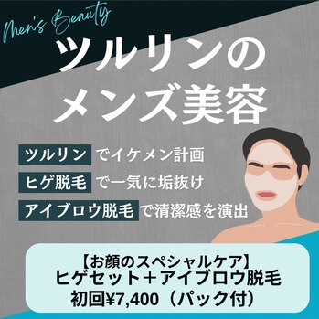 ツルリンの【お顔のスペシャルケア】は、ヒゲ脱毛+アイブロウ脱毛がセットになった特別メニュー👏。