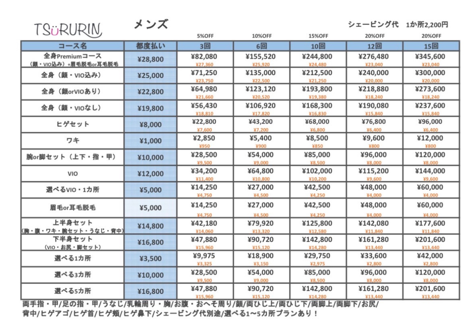 👇こちらがメンズ脱毛料金表最新版です!!