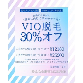 【40歳以上の方限定 VIO回数券30%オフ】をご用意しております。